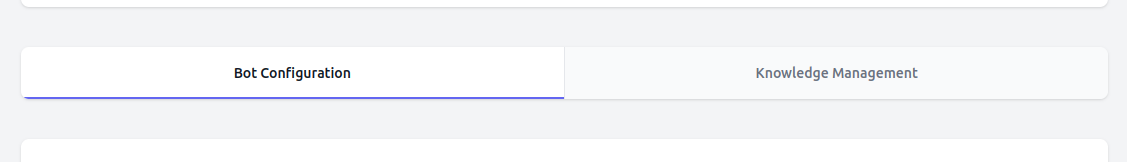 <figure><img src="https://257186194-files.gitbook.io/~/files/v0/b/gitbook-x-prod.appspot.com/o/spaces%2Fm08K9bqkIPUe4srW89sA%2Fuploads%2FNg9chteJEUhem7p8Sb5T%2Fimage.png?alt=media&#x26;token=951f159b-cf8f-47c8-8824-2a5c62132d4c" alt=""><figcaption><p>By default you are on the Bot configuration tab, select "Knowledge Management" to upload new knowledge</p></figcaption></figure>