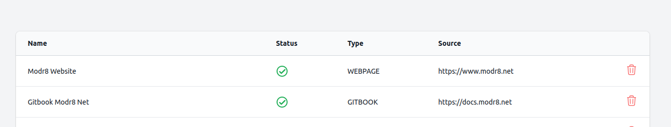 Once you have started training your Modr8.ai bot on custom knowledge you will be able to track it's progress and also remove any obsolete knowledge you no longer require.