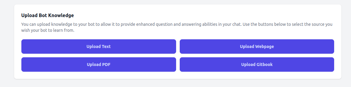 6. Scroll down to the card titled `"Upload Bot Knowledge"` and select `"Upload Webpage"`
