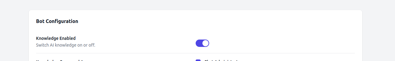 5. Click the toggle button beside `"Knowledge Enabled"` item on the Bot Configuration card to turn the module on.